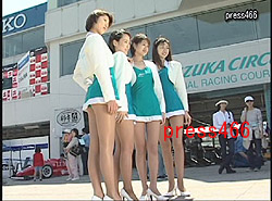 鈴鹿レ−スクイ−ン4名、ステ−ジでのイベントで、ミニスカ−トです。